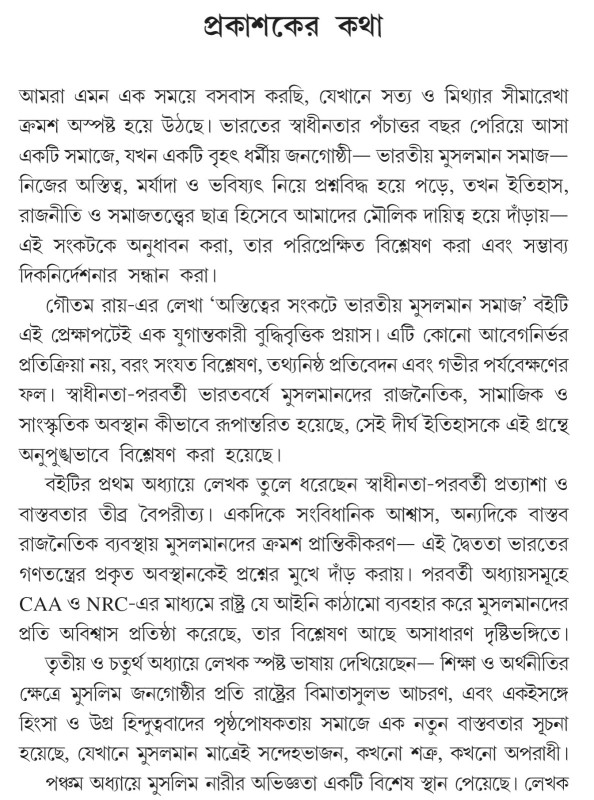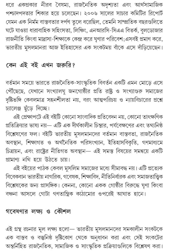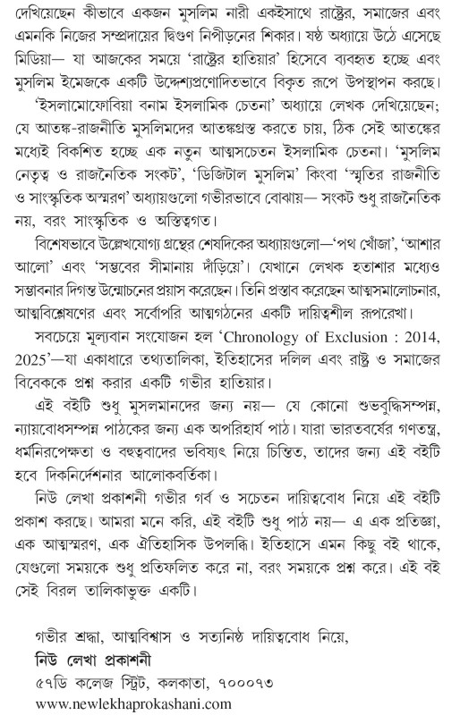 এই গ্রন্থ সেই পাঠকদের জন্য যারা রাষ্ট্র ও নাগরিকত্বের সম্পর্ক, ইসলামোফোবিক ক্ষমতার ভাষ্য, এবং দক্ষিণ এশিয়ার মুসলিম সম্প্রদায়ের অস্তিত্বসংকটকে একটি পোস্টন্যাশনাল, পোস্টকলোনিয়াল ও ডিসকারসিভ কাঠামোর ভেতর পড়তে চান।