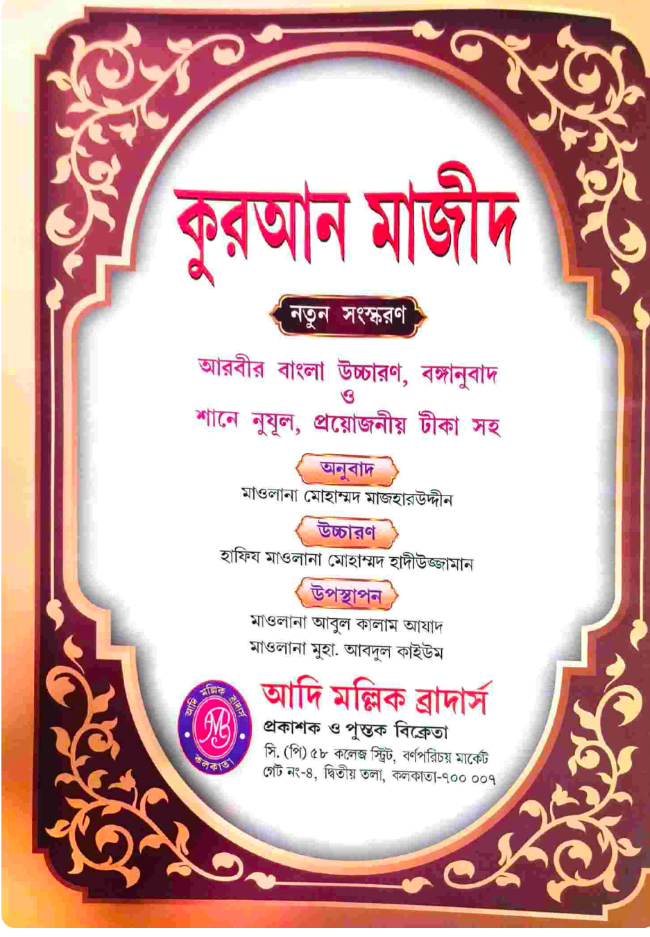 আরবী বাংলা উচ্চারণ , বঙ্গানুবাদ ও শানে নুযূল , প্রয়োজনীয় টীকা সহ আর্ট পেপারের কুরআন মাজীদ