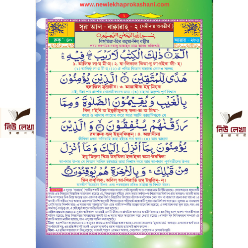 উচ্চারণ-হাফিয মাওলানা মোহাম্মদ হাদীউজ্জামান , উপস্থাপনে মাওলানা আবুল কালাম আজাদ ও মাওলানা মুহা.আবদুল কাইউম । নির্ভরযোগ্য বঙ্গানুবাদ শানে নুযূল এবং প্রয়োজনীয় টীকা সহ ।দুধসাদা কাগজ ও নয়ন অবিরাম বাইন্ডিং।